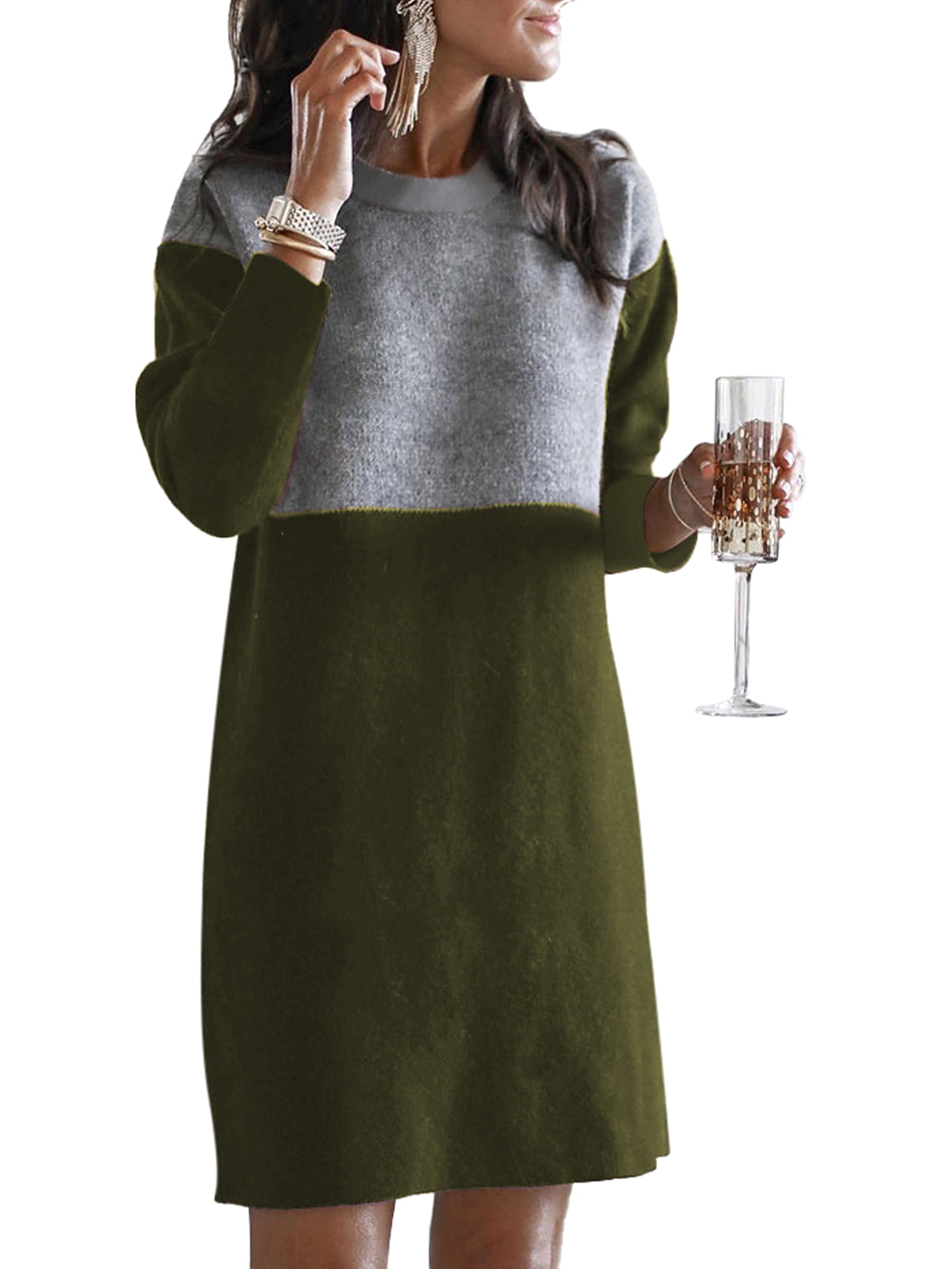 Awaytr Autumn Womens Casual Sweatshirt ladies long jumper dress