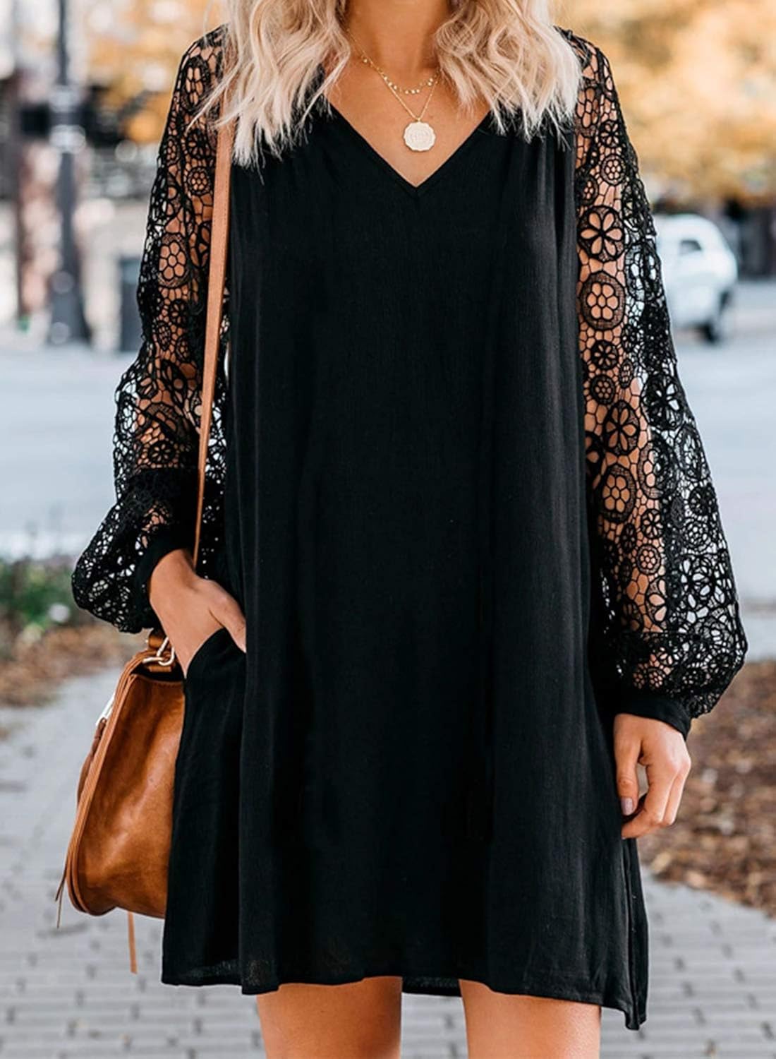 AlvaQ Women V Neck Lace Long Sleeve alvaq dresses