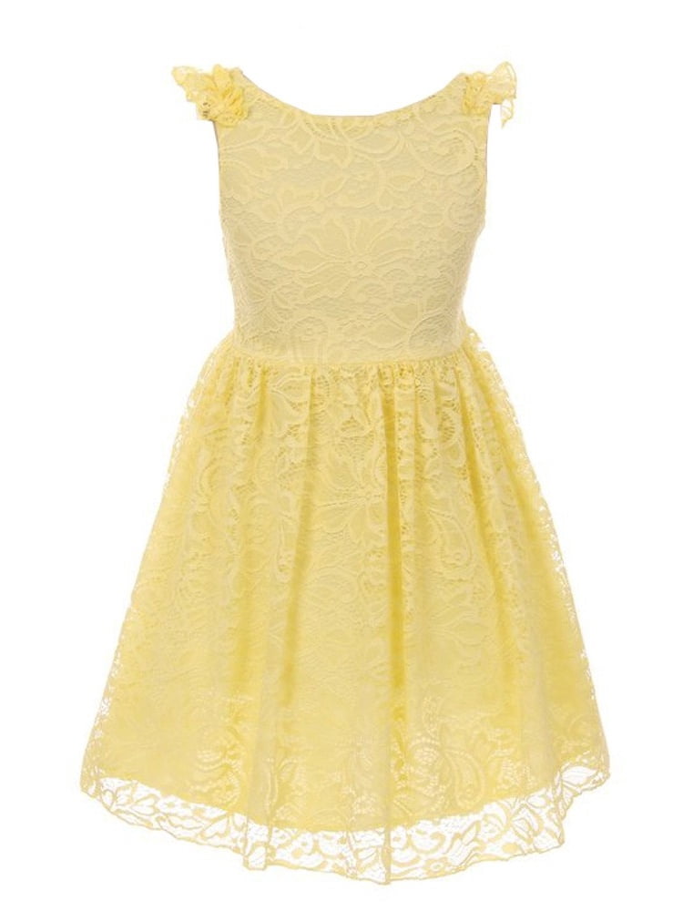 Girls Yellow Floral Pattern Lace Easter yellow easter dresses for juniors