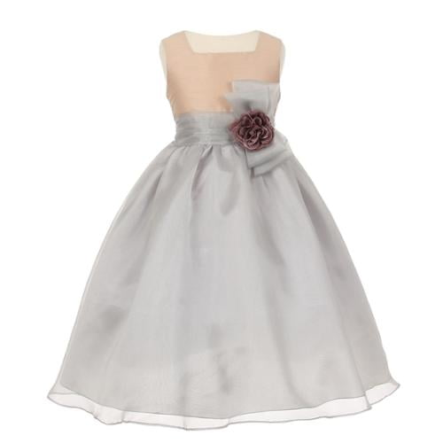 Big Girls Champagne Silver Dupioni champagne silver dress