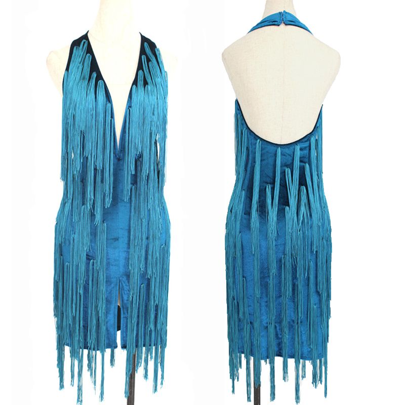2020 Latin Dance Dress Sexy Tassels blue dress with tassels