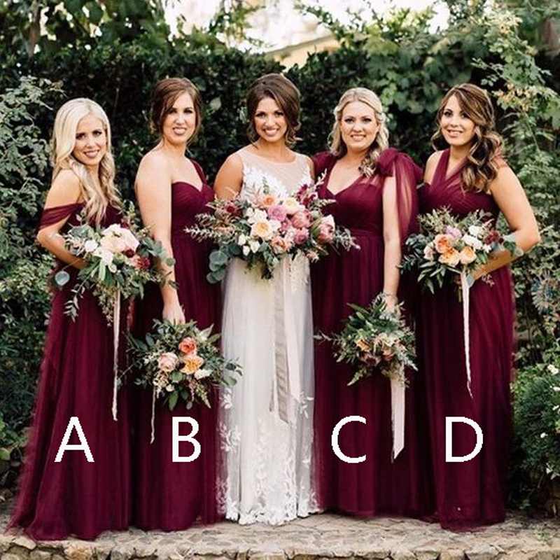 One Shoulder Burgundy Tulle Bridesmaid one shoulder burgundy bridesmaid dresses