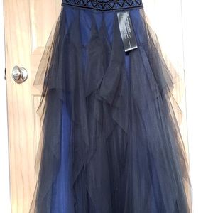 bcbg strapless embroidered lace gown