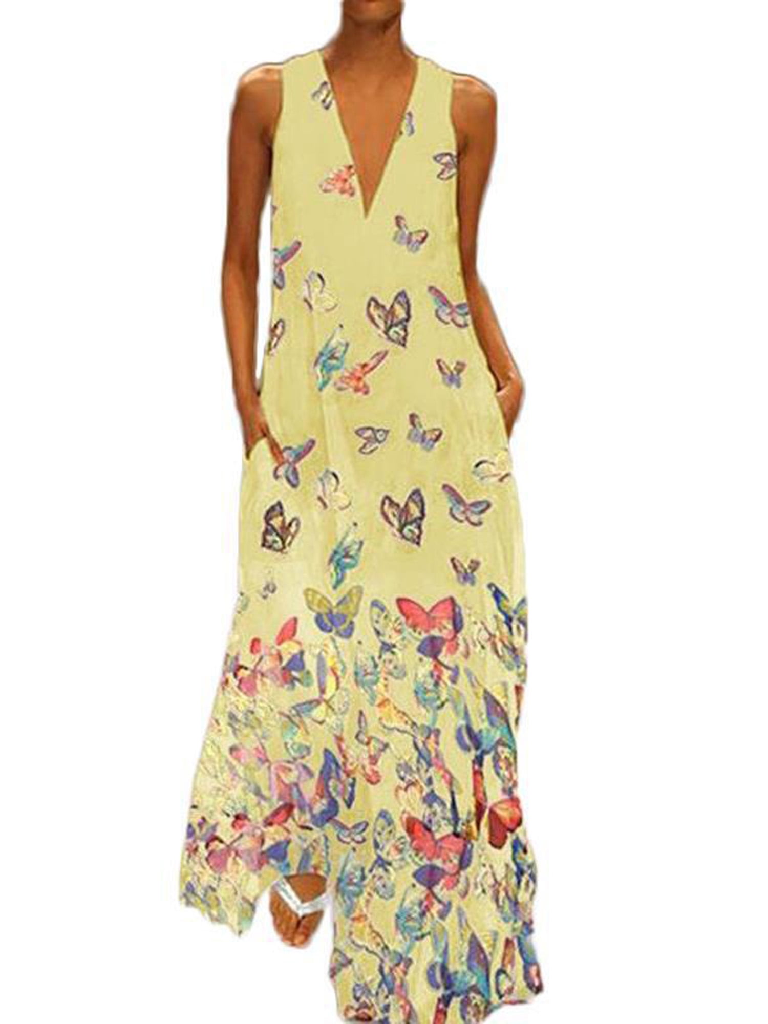 Women's Plus Size Butterfly Print women's plus size long sundresses