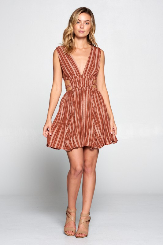Rust Striped Deep V Dress - Longhorn deep orange dress