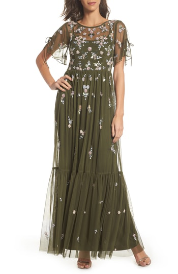 Adrianna Papell Embellished Floral Gown adrianna papell boho beaded mesh gown