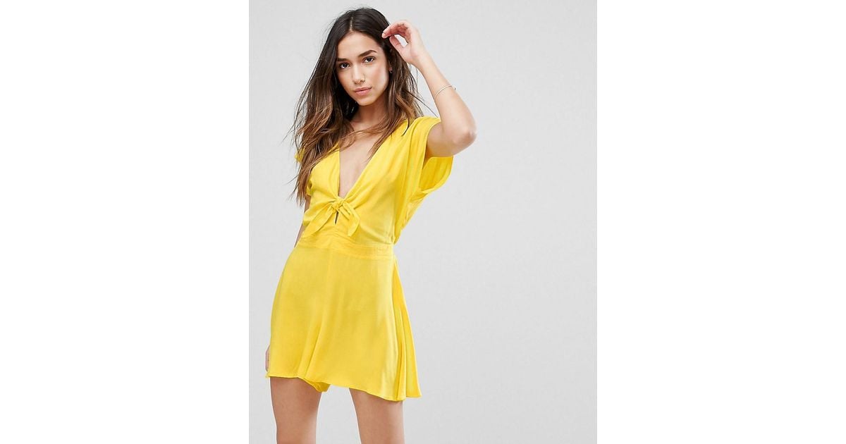 New Look Synthetic Tie Front Romper in yellow tie front dress