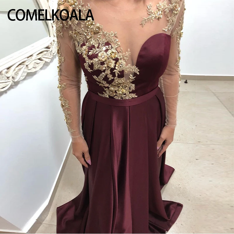 2019 Burgundy Satin Prom Dress Long burgundy and gold dress plus size
