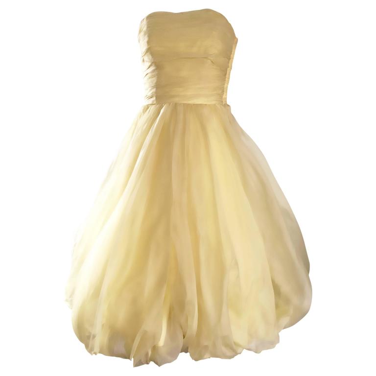 Vintage 1950s Lemon Pale Yellow Demi pale lemon dress
