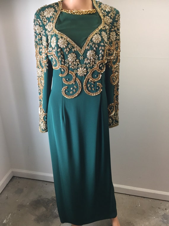 Vintage Black Tie Oleg Cassini Formal long sleeve black tie gown