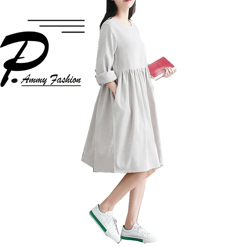 Lantern Sleeve Corduroy Dress Womens tunic jumper dress uk