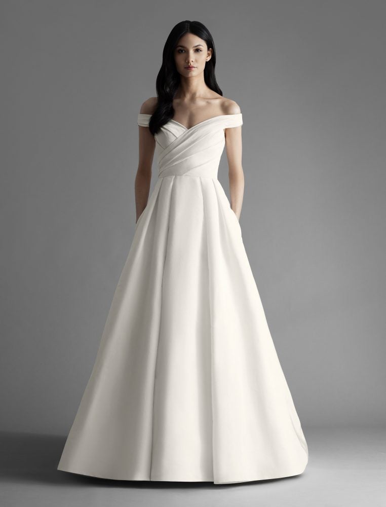 Off The Shoulder Draped A-line Wedding silk faille wedding dress