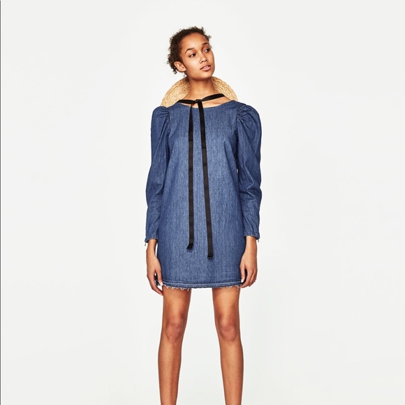 zara puff sleeve denim dress