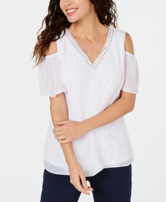Clearance/Closeout Cold Shoulder Women macys petite tops on sale