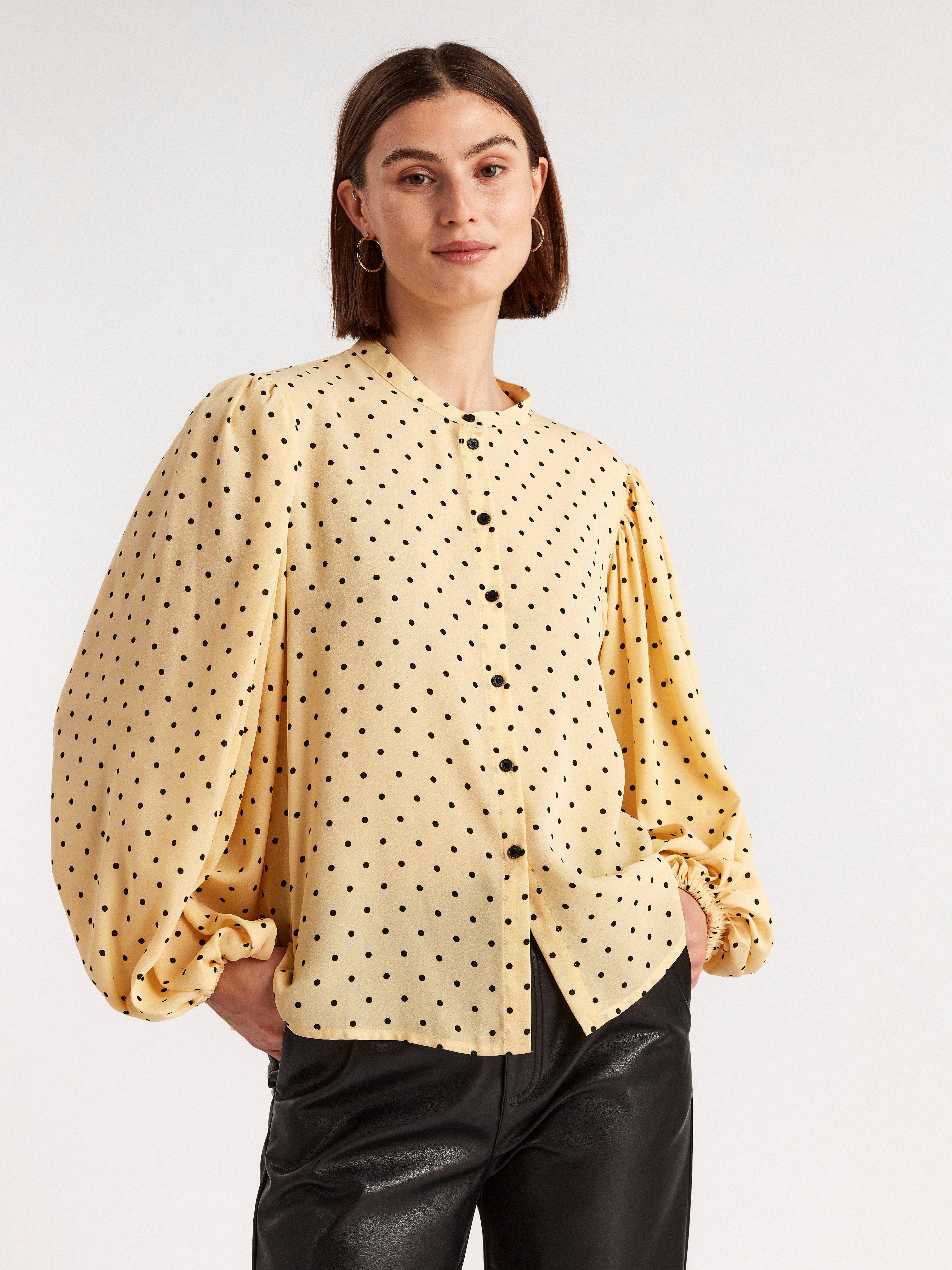 Patterned long sleeve blouse | Lindex yellow long sleeve blouse