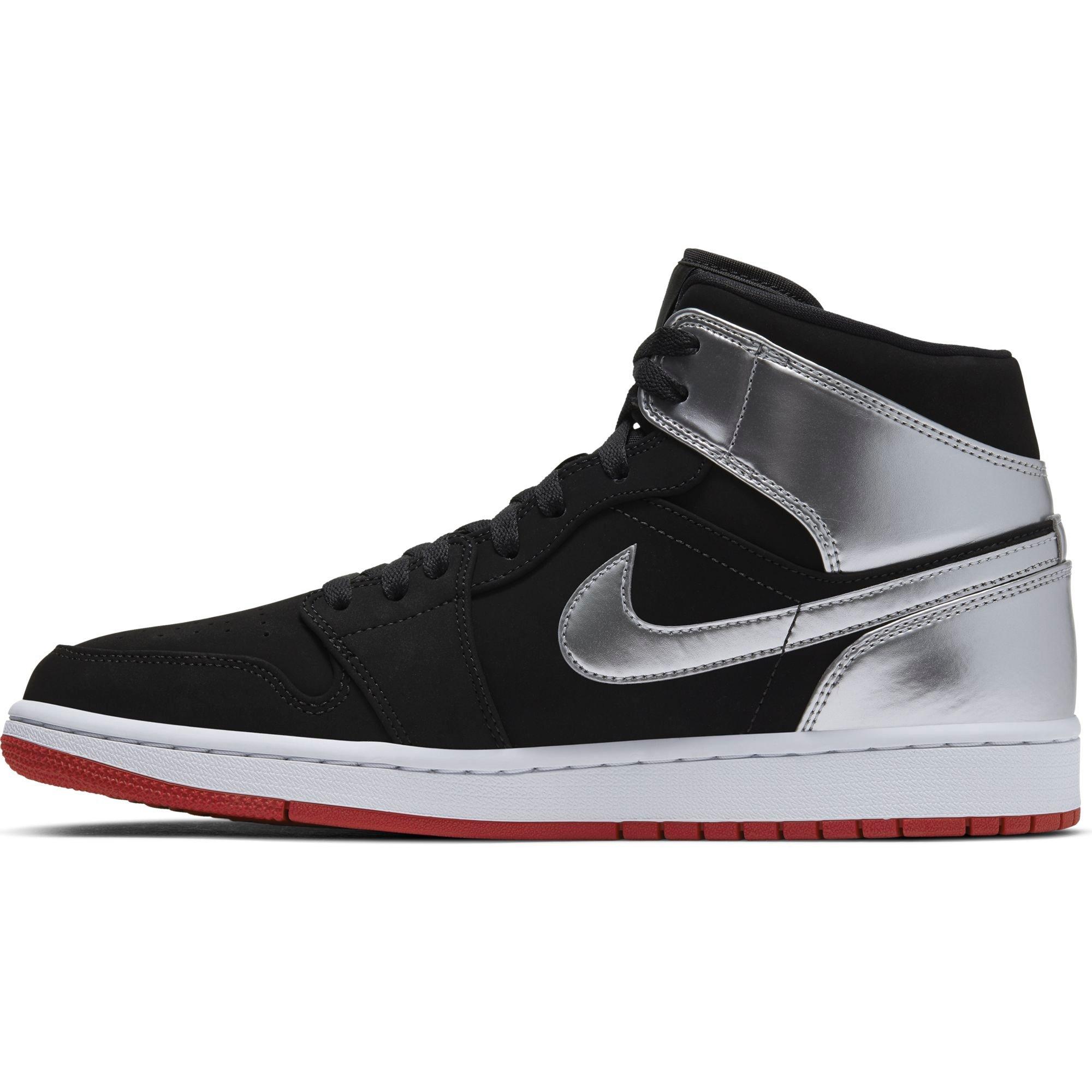 Air Jordan 1 Mid 'Black and Metallic red and silver jordan 1